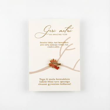 Jei dar nespėjote prie vartų pasisodinti šermukšnio, o į kelionę pasiimti šermukšnio lazdą atrodo nepraktiška, padovanokite šią stilizuotą šermukšnio šakelę sau arba savo artimiems žmonėms ir magiška šermukšnio galia juos saugos ir lydės visuose gyvenimo keliuose!